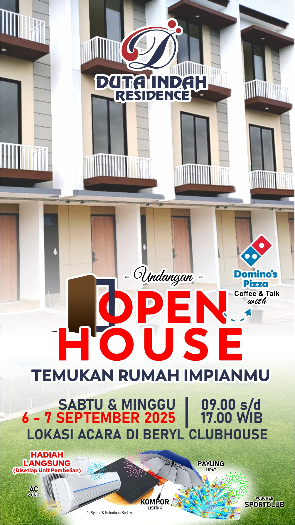 Bersama keluarga 👨👩👧👦 dan ajak orang-orang tercintamu🥰 untuk datang di acara 📢OPEN HOUSE kami!! sambil menikmati lezatnya Domino’s Pizza 🍕🍕.